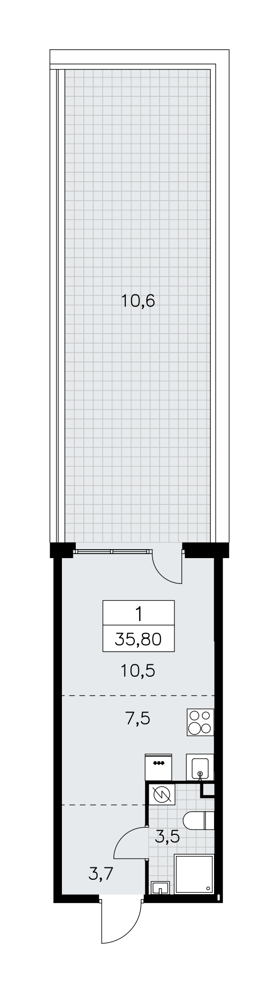 Продаётся квартира-студия, площадью 35,9 кв. м на 2-м этаже дома комфорт-класса в ЖК "Бунинские кварталы". Квартира с функциональной планировкой: большие окна, высота потолка 2,99 м, мастер-спальня, терраса.