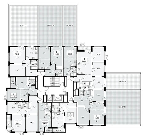 Без отделки. Есть варианты квартир с дизайнерской отделкой и с предчистовой отделкой white box в других корпусах ЖК.