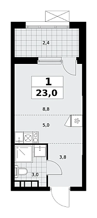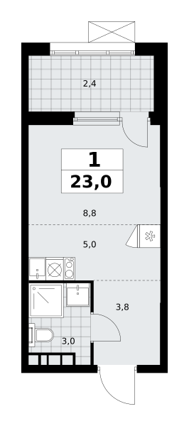 Продаётся квартира-студия, площадью 23,0 кв. м на 9-м этаже дома бизнес-класса в ЖК "Бунинские кварталы". Квартира с функциональной планировкой: большие окна, высота потолка 3,1 м, балкон.