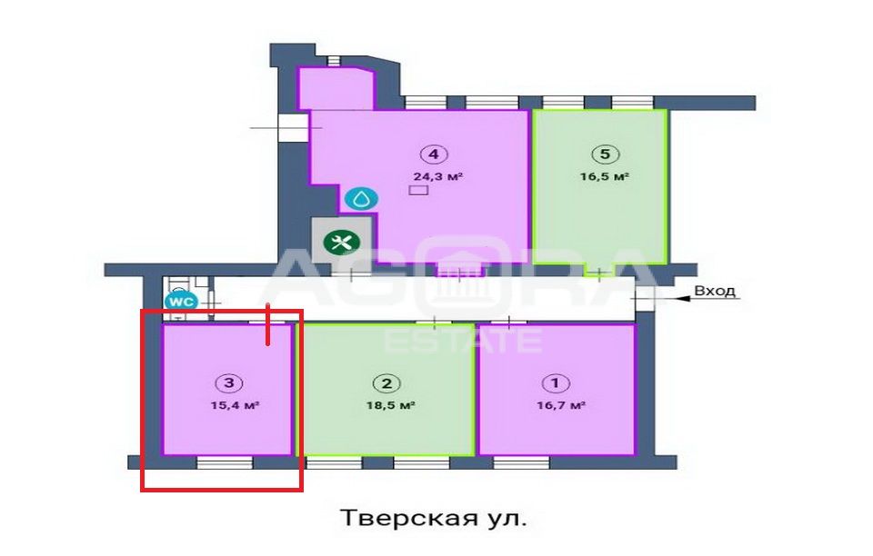 Весенняя акция! Цена аренды снижена на 40 000 руб.в месяц! Офисное помещение находится в историческом центре Москвы, рядом с метро Тверская, в 3-х минутах пешком. Офис площадью 15,4 м2 расположен на 1-м административном этаже 6-ти этажного жилого дома (блок 3 на плане этажа). 1-й этаж – высокий. Отдельный вход в подъезд с офисами - со двора. Офис светлый, с окном. Санузел – на этаже. Планировка открытая. Выполнен свежий качественный ремонт. Высота потолков 3,2 метра. Эксплуатационные расходы входят в арендную ставку, дополнительных расходов арендатор не несет.