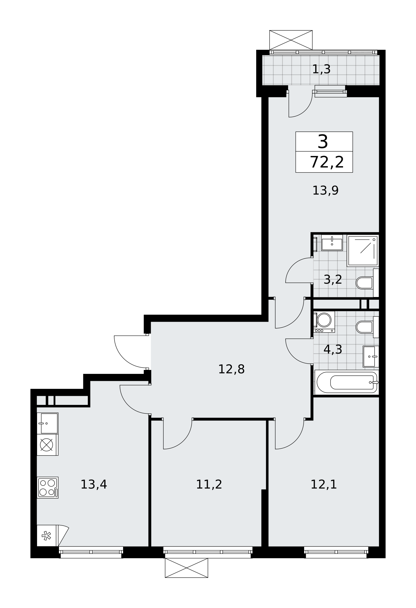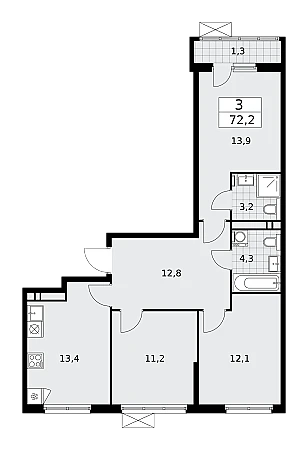 Продаётся 3-комнатная квартира, площадью 72,3 кв. м на 11-м этаже дома комфорт-класса в ЖК "Прокшино". Квартира с функциональной планировкой: большие окна, высота потолка 2,8 м, балкон, мастер-спальня.