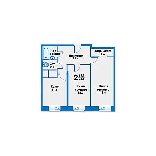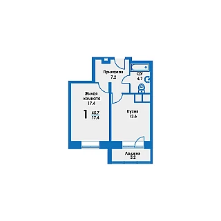 Купить 1к квартиру 41 м² в ЖК Высокий берег