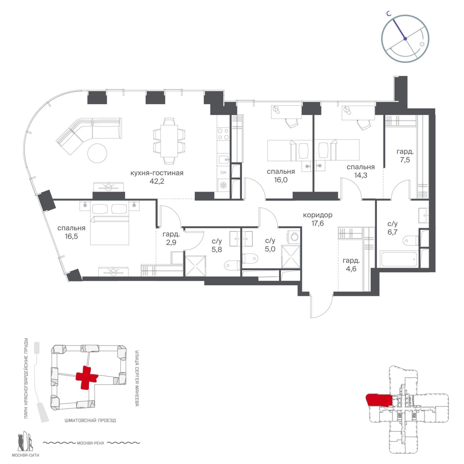 3к квартира 117 м² в Жилой комплекс Клубный дом на Котельнической набережной