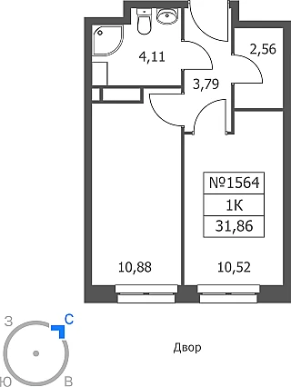 Имеется застекленный балкон с панорамными окнами в пол и с потрясающим видом.