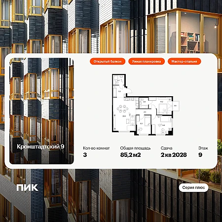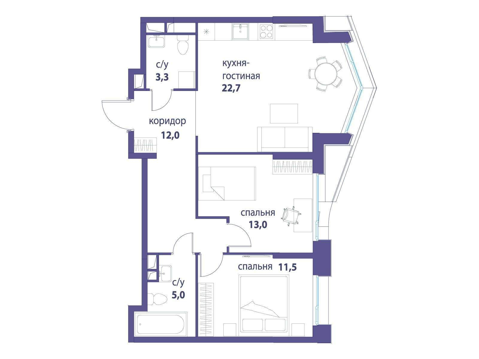 Продается 2-комнатная квартира от застройщика: общая площадь 67.40 м, жилая 24.50 м, кухня 22.70 м, 21-й этаж, жилой квартал «Вдохновение», корпус 32 (секция 1) . Срок сдачи: 4 квартал 2027 года.