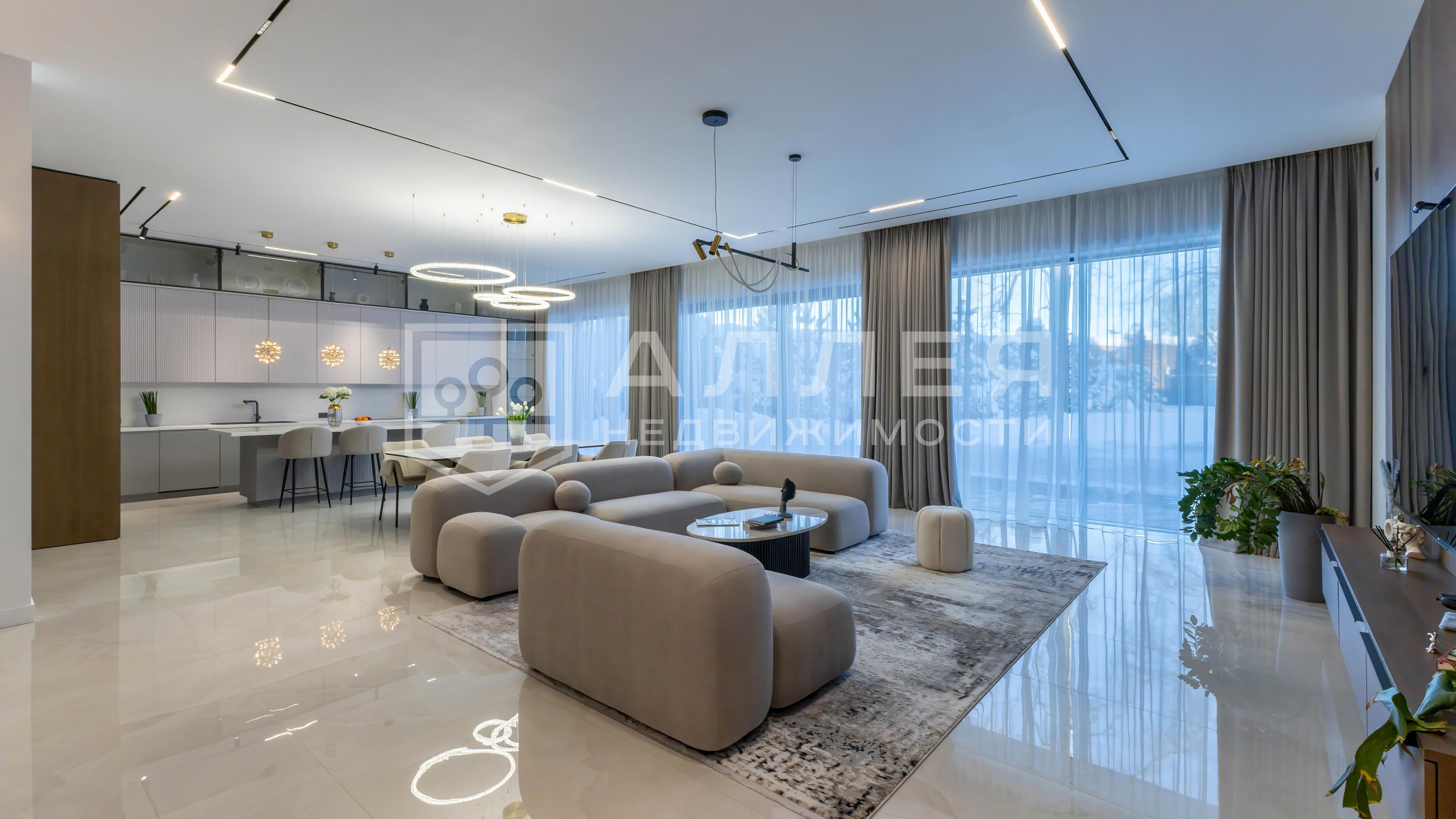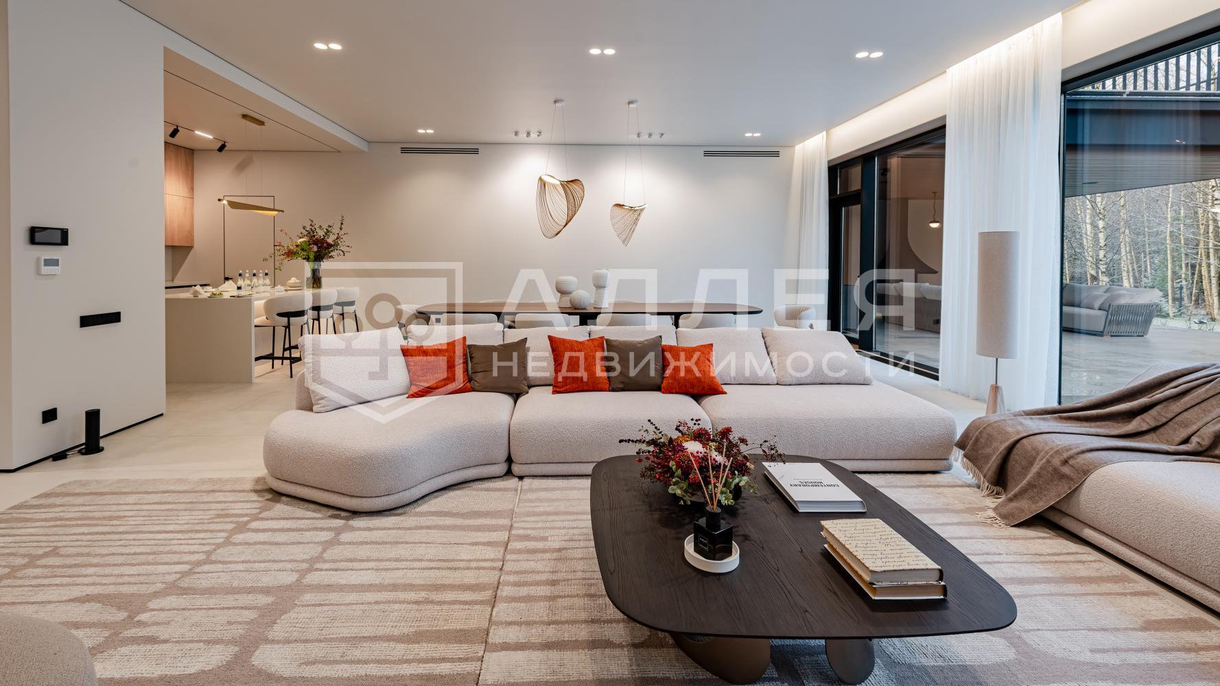 Новый, современный дом на прилесном участке. Дом совершенно приватный и уединенный. С участка и из комнат открываются красивые панорамные виды на лес, как и должно быть в загородном доме. Во всех спальнях отдельные гардеробные и санузлы. Есть спальня на первом этаже для гостей или родителей. Для отдыха в доме СПА зона с сауной. Из гостиной выход на большую крытую веранду с мангальной зоной. Установлены теплые водяные полы, канальное кондиционирование и приточная вентиляция, есть просторная постирочная. Дом полностью меблирован и готов к проживанию.
