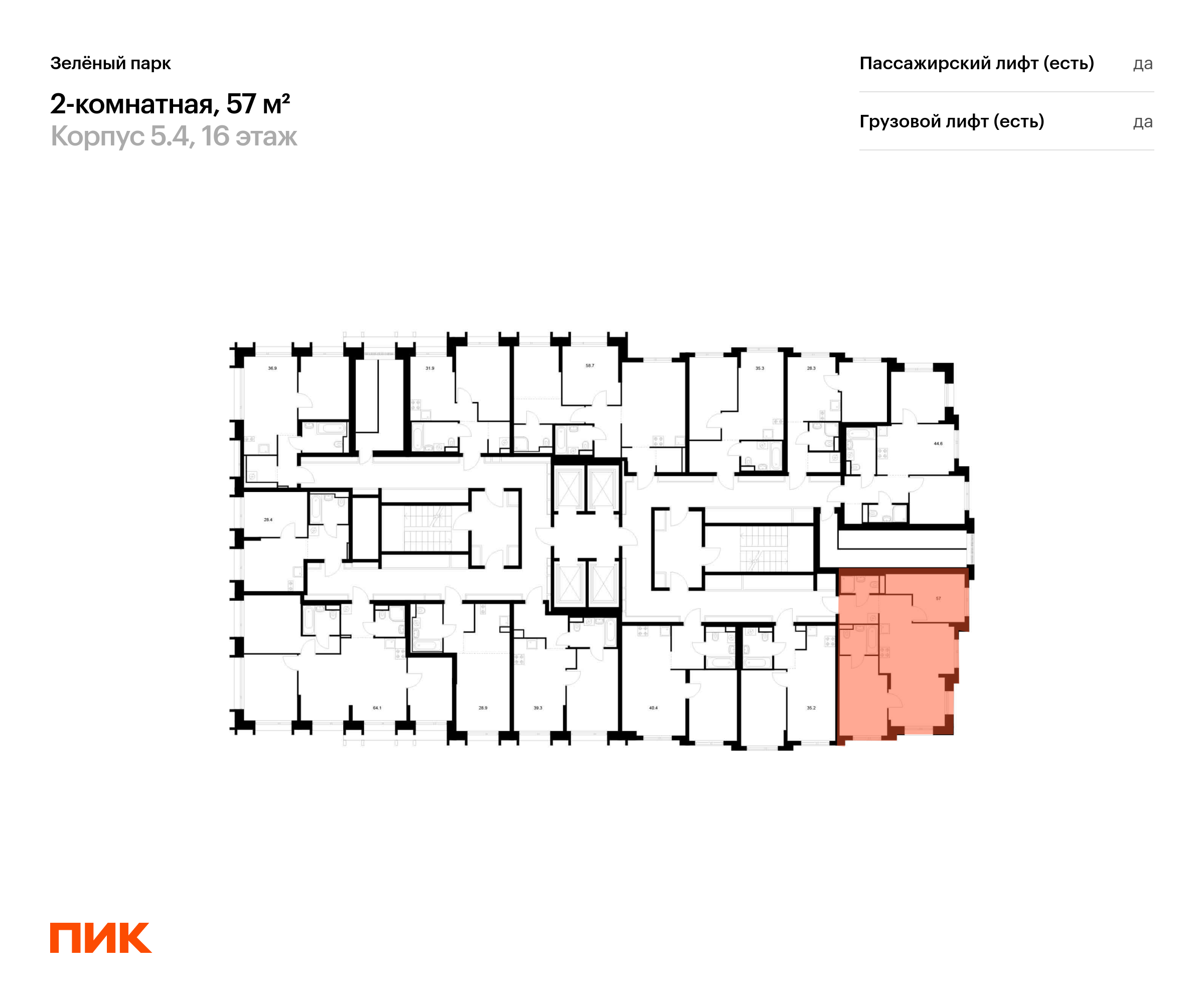 Продаётся 2-комн.квартира площадью 57.00 кв.м на 16 этаже 28 этажного дома (Корпус 5.4, секция 5) проекта ПИК Зелёный парк. Светлый просторный подъезд на уровне земли, функциональная планировка, большие окна, с отделкой.