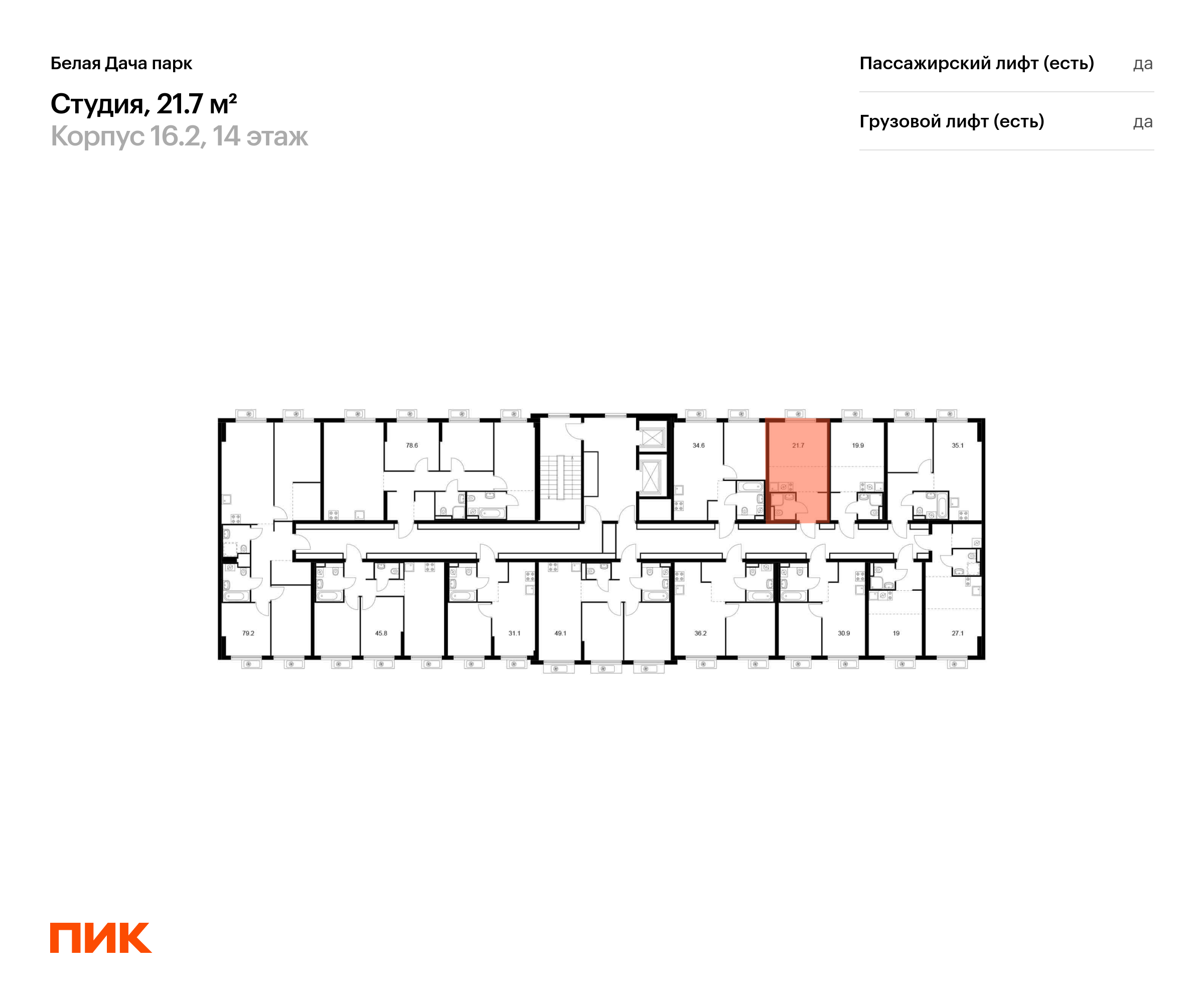 Продаётся квартира-студия площадью 21.70 кв.м на 14 этаже 15 этажного дома (Корпус 16.2, секция 6) проекта ПИК Белая Дача парк. Светлый просторный подъезд на уровне земли, функциональная планировка, большие окна, с отделкой.
