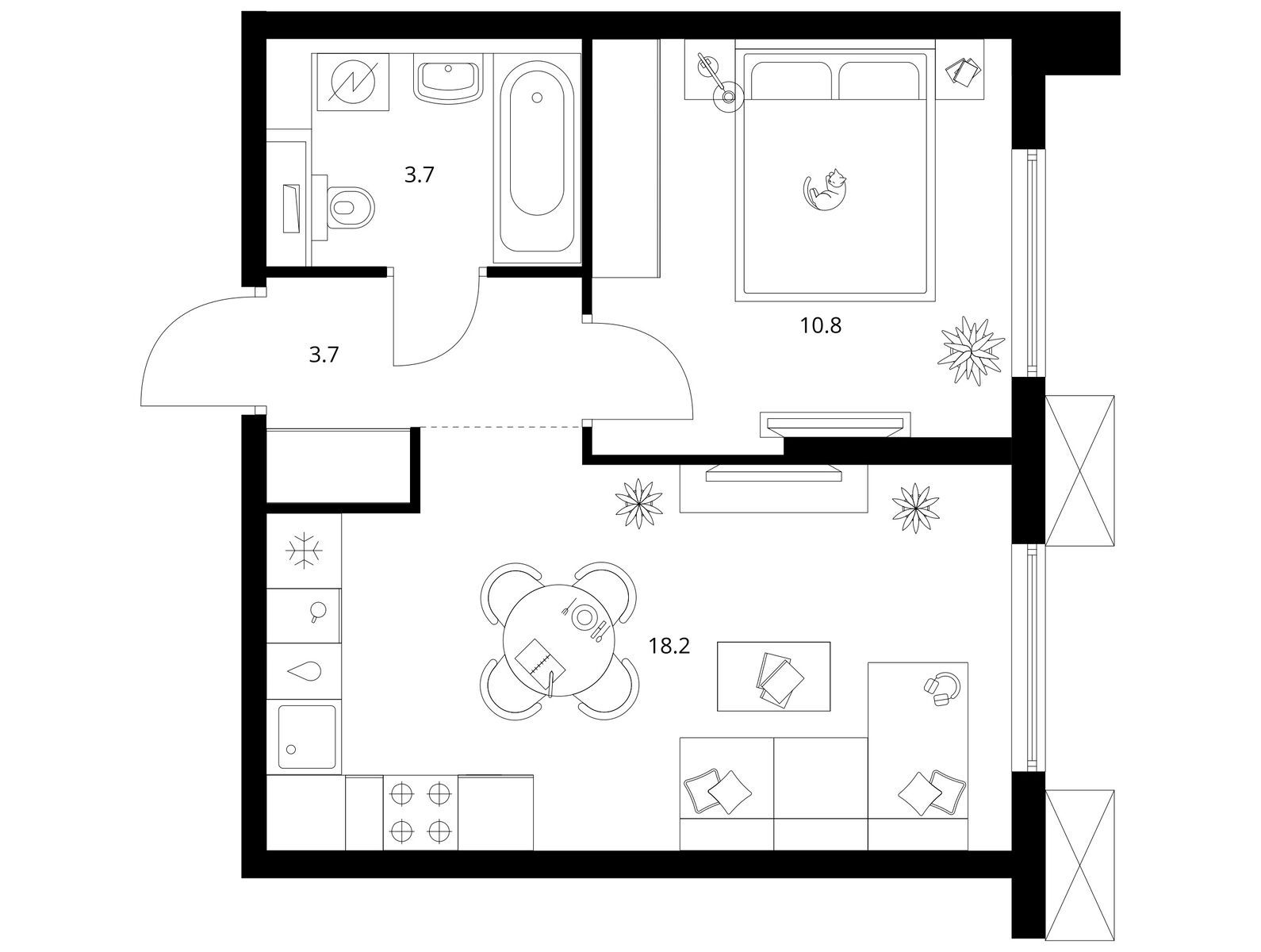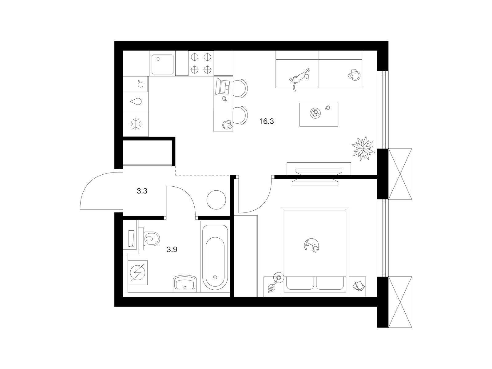 Для ценителей простора и обилия солнечного света мы предусмотрели квартиры с окнами в пол и угловыми окнами, а также французскими, открытыми и закрытыми балконами. Артикул - 1008272
