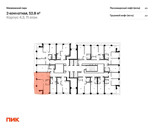 Продаётся 2-комн.квартира площадью 52.80 кв.м на 11 этаже 31 этажного дома (Корпус 4.3, секция 3) проекта ПИК Матвеевский парк. Светлый просторный подъезд на уровне земли, функциональная планировка, большие окна, с отделкой.