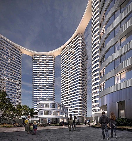 Архитектурную концепцию корпусов 4 квартала разработало российское бюро KATARSIS. Акцентные белые корпуса с большими окнами делают архитектуру проекта мощной и запоминающейся. А фоновые части зданий придают образу размеренность и спокойствие.