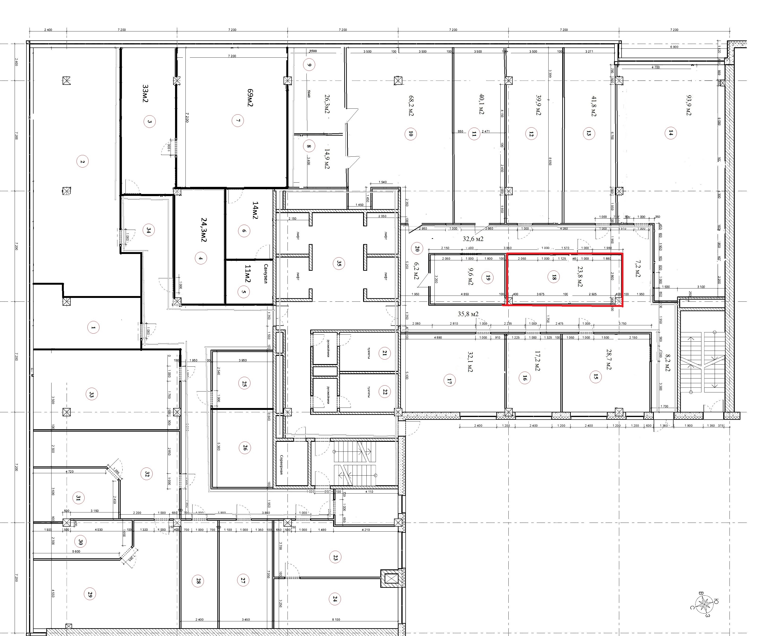 - центральные коммуникации, сан.узлы на этажах