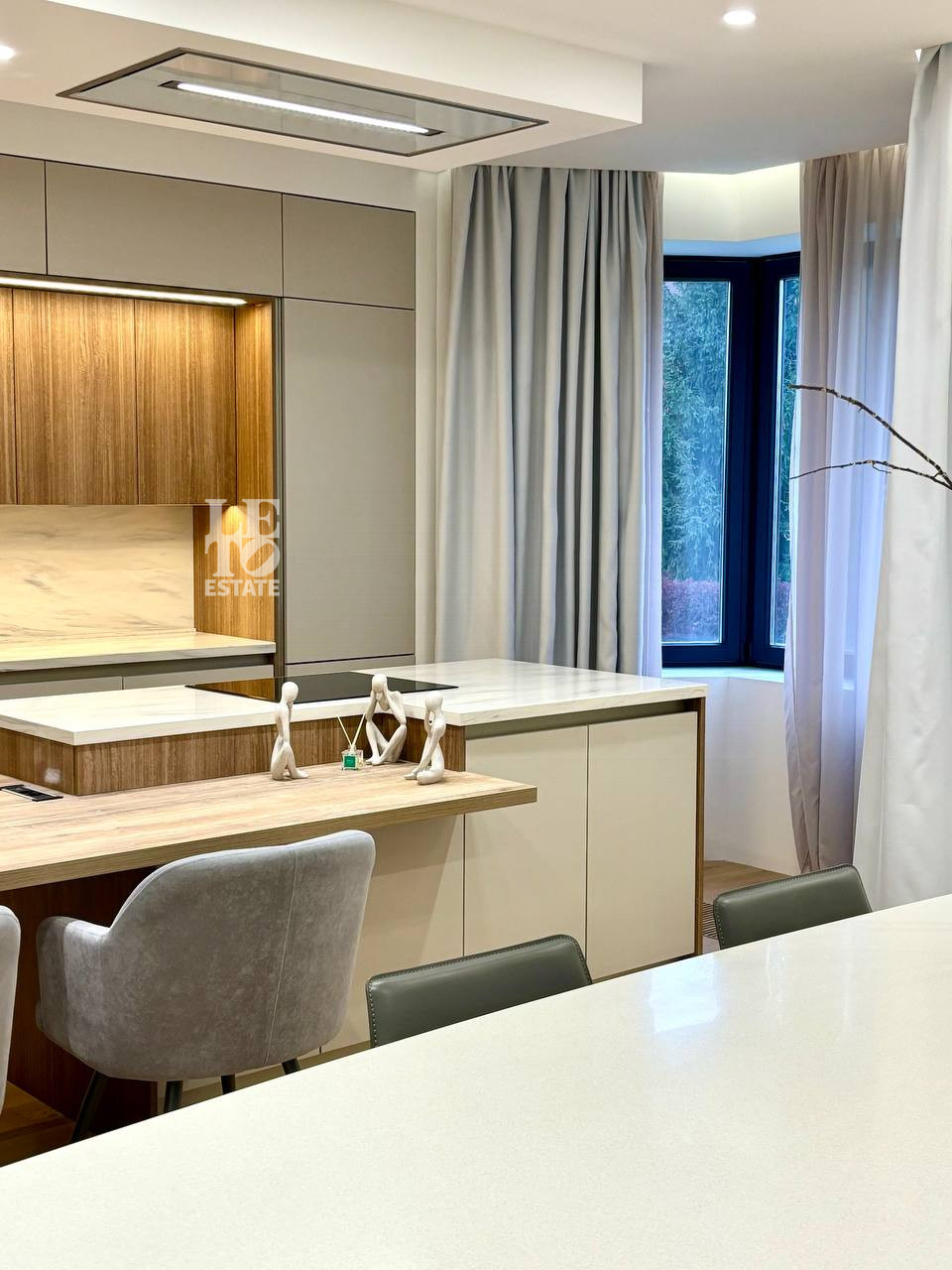 Дом построен из кирпича, перекрытия - монолитные. Есть вся необходимая мебель и техника для постоянного проживания. На первом этаже расположена просторная зона прихожей, гардеробная комната для верхней одежды и дополнительная комната для несезонных вещей. Кухня - гостиная с панорамными окнами, биокамином и выходом на летнюю террасу. На кухне есть вся необходимая встроенная техника: посудомоечная машина, холодильник, духовой шкаф, варочная панель и кофе машина. Кухонный остров со встроенной потолочной итальянской вытяжкой.