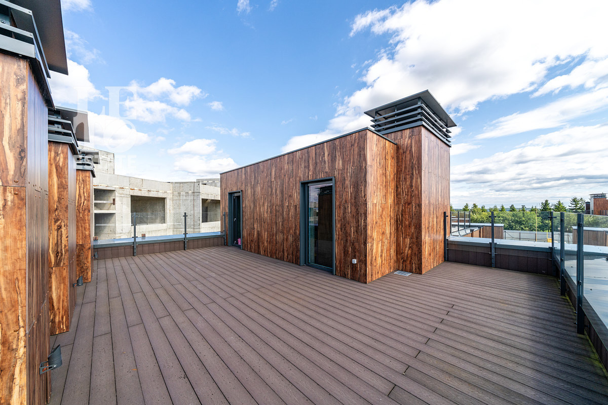 На эксплуатируемой кровле предусмотрено достаточно места для отдыха всей семьей.