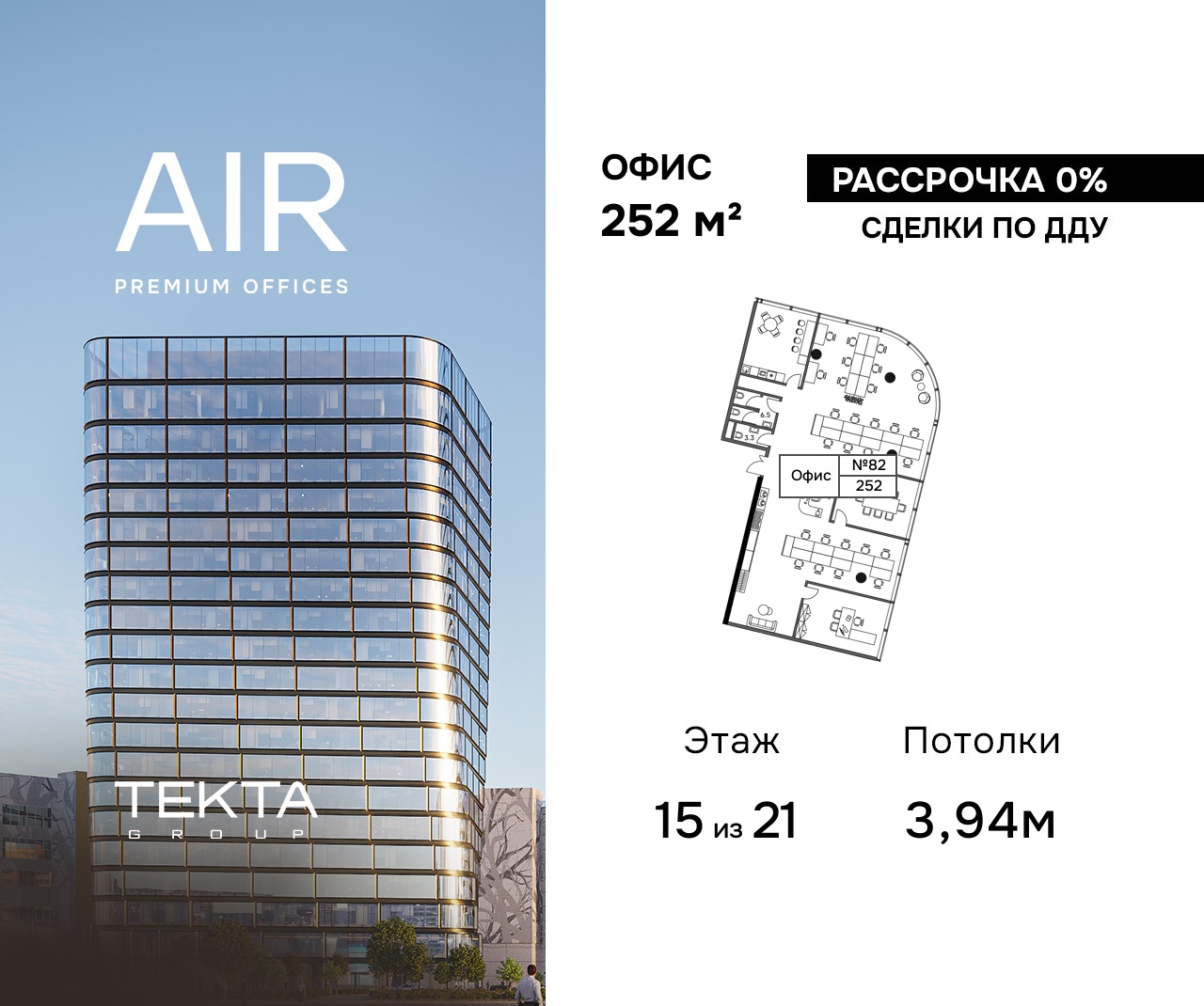 Продается помещение свободного назначения 252.00 м² на 15 этаже бизнес-центра AIR.