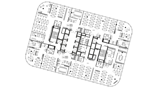 • Угловые блоки: Офисы с молированным панорамным остеклением и обзором 270 градусов.