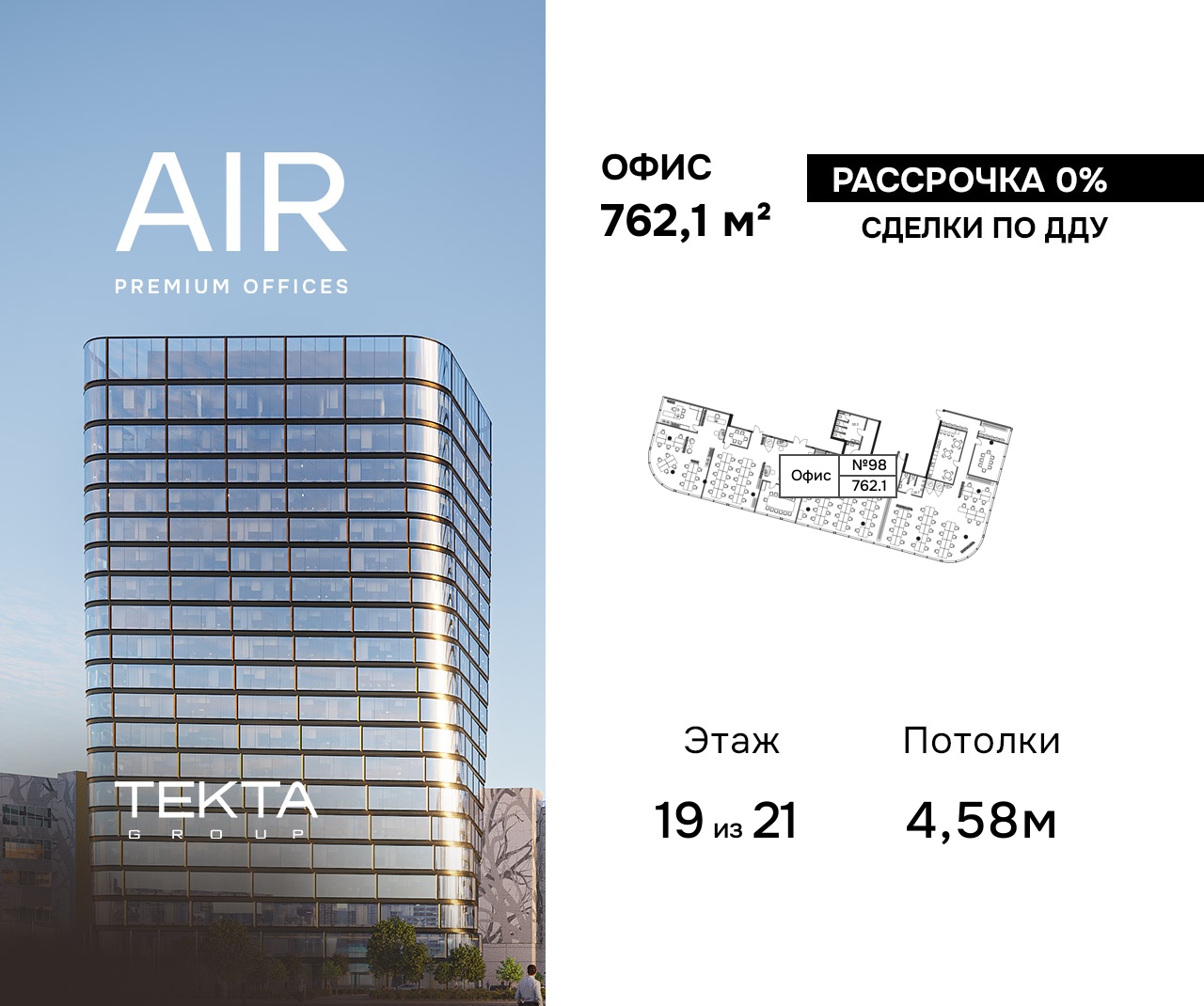 Купить офис 762 м² в БЦ Air (Эир)