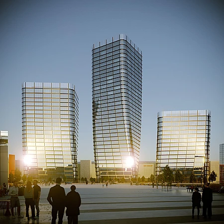 • Угловые блоки: Офисы с молированным панорамным остеклением и обзором 270 градусов.