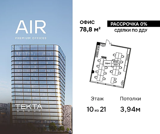 Теперь инвестировать в премиальный офис стало еще проще! Бизнес-центр AIR предлагает выгодные финансовые условия: