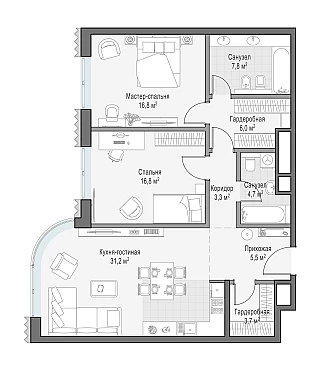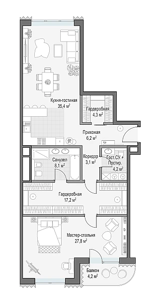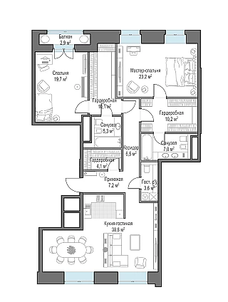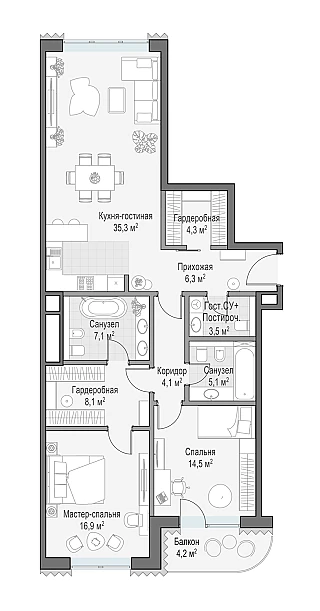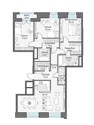 Купить 3к квартиру 109 м² в квартале LIFE TIME (ЛАЙФ ТАЙМ)