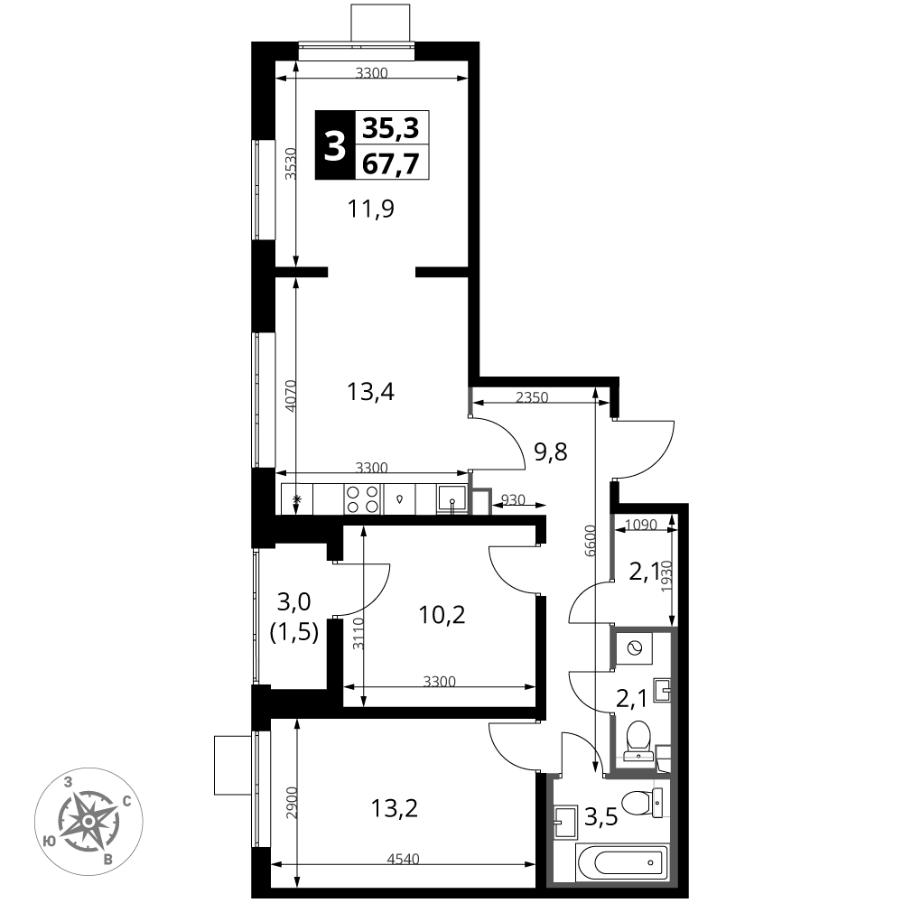 · Дополнительно: Утеплённый балкон с тёплым полом.