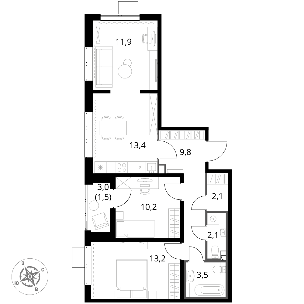 · Мебель и техника: Вся мебель и встроенная техника остаются.