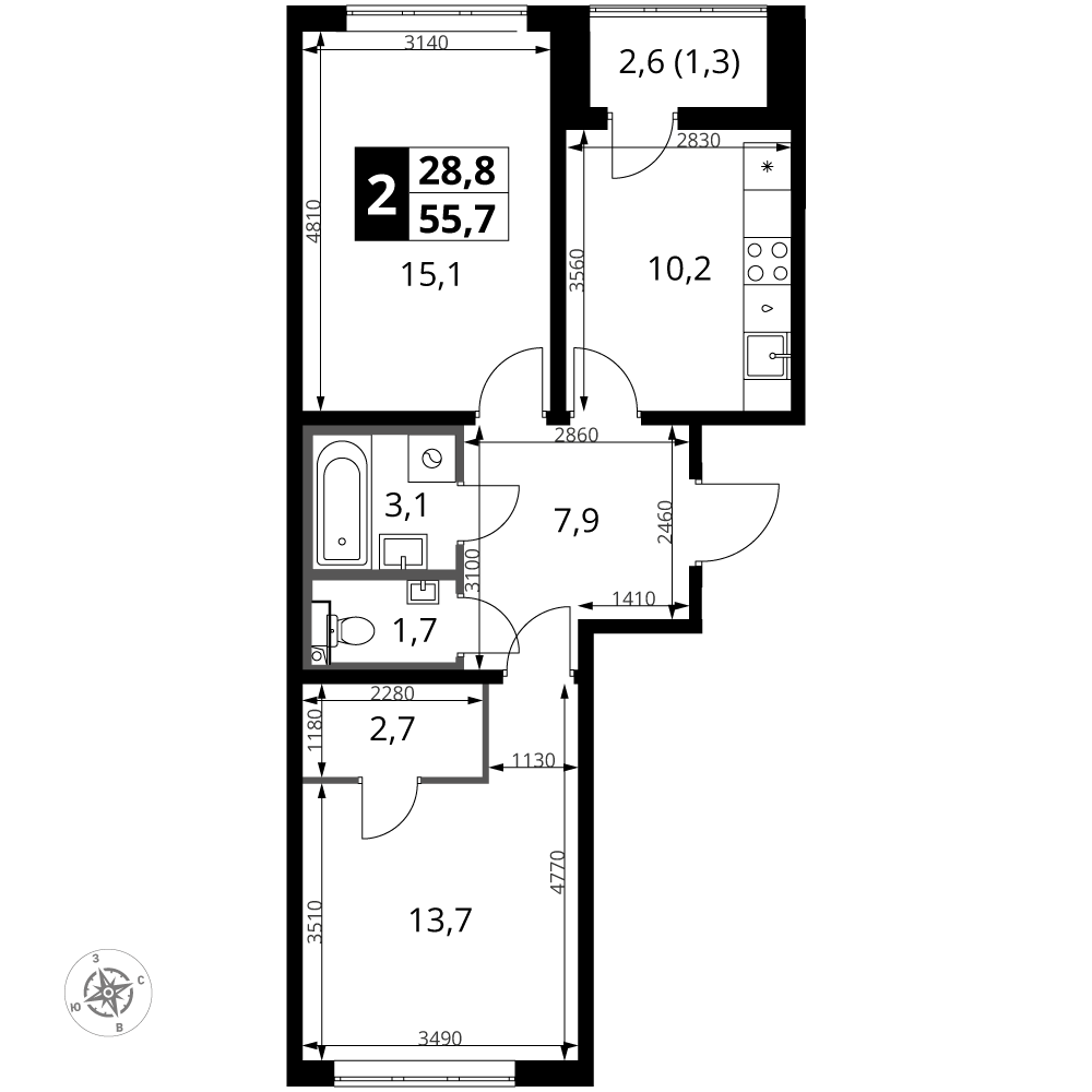 · Высота потолков: 2,70 м.