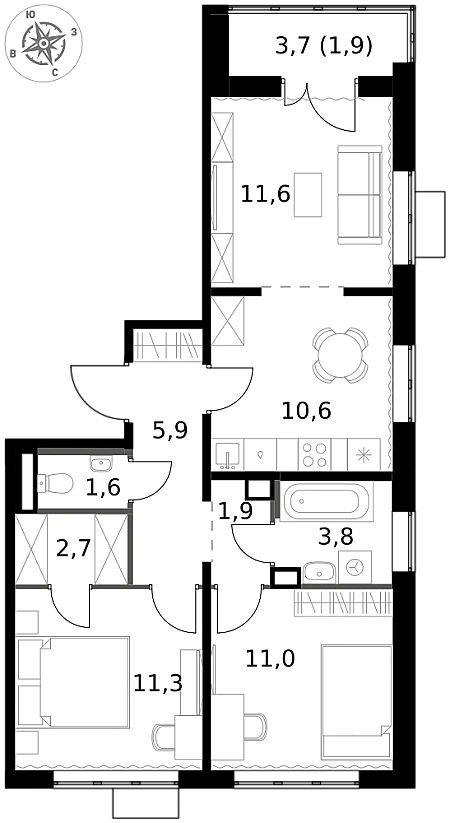 Раздельные комнаты, раздельный санузел, светлая и просторная планировка. В квартире отсутствует мебель, что предоставляет возможность реализовать собственные дизайнерские идеи.