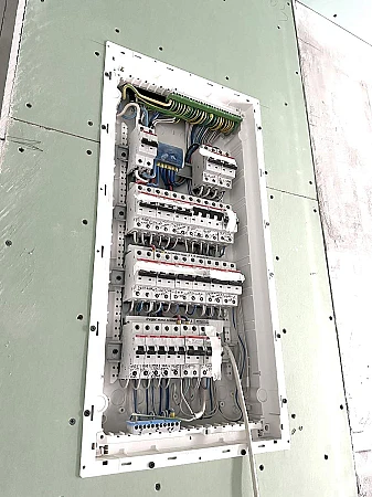 проведена электрика, сантехника и отопление. Обратите внимание на количество автоматов -