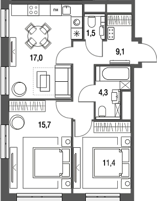 Продается 1-комнатная квартира от застройщика: общая площадь 39.80 м, жилая м, кухня м, 11-й этаж, жилой квартал «Гордость», корпус 36 (секция 5) . Срок сдачи: 2 квартал 2029 года.