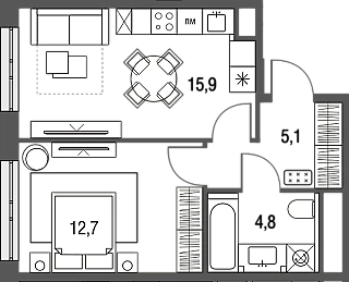 Продается квартира-студия от застройщика: общая площадь 28.80 м, жилая 10.00 м, кухня 10.40 м, 14-й этаж, жилой квартал «Гордость», корпус 36 (секция 5) . Срок сдачи: 2 квартал 2029 года.