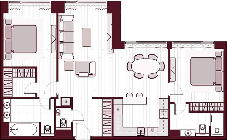 5 мин. от Тверской улицы, Патриарших прудов и Белой площади;