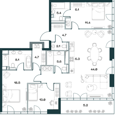 Купить 4к квартиру 136 м² в Премиум-квартал SHIFT
