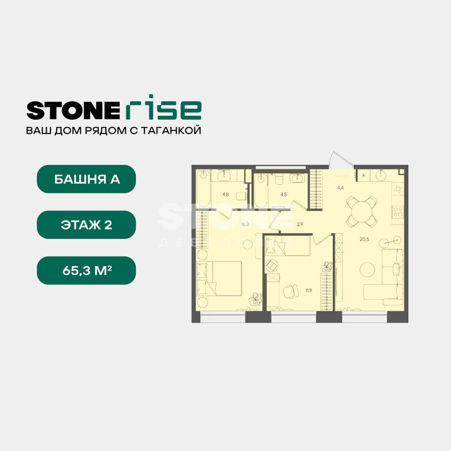Купить 2к квартиру 65 м² в ЖК STONE Rise