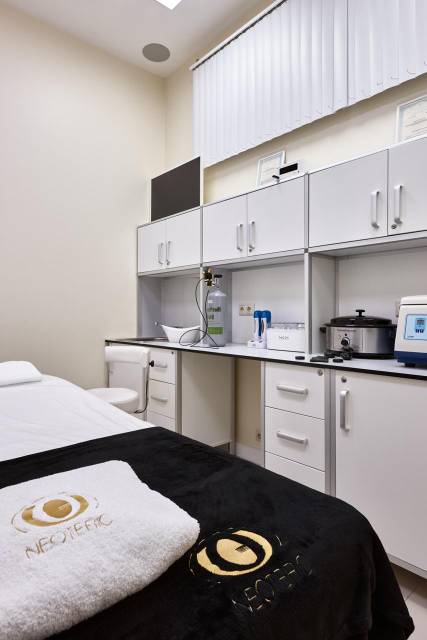 Наполнение: встроенная мебель (шкафы), массажный стол, медицинский стул со спинкой, лампа-лупа напольная, медицинский холодильник-витрина, медицинская лабораторная центрифуга Армед, профессиональный аппарат для УЗ-чистки лица MZ-C111, нагреватель для массажных камней, профессиональный аппарат для миостимуляции (EMS), воскоплавы.