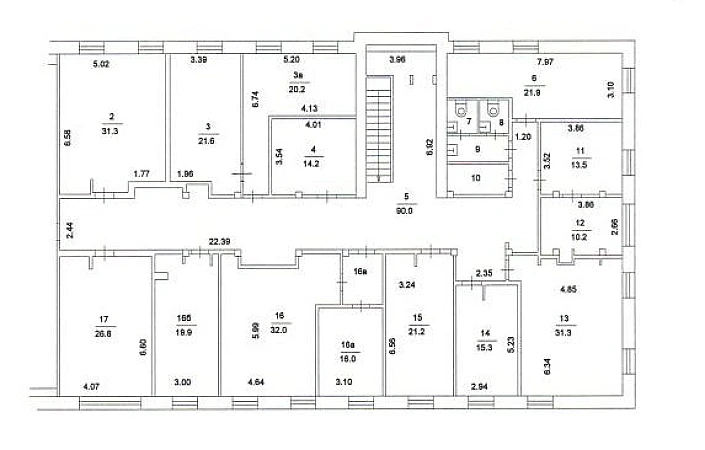 Поделено на блоки от 15 до 90 кв.м. Полностью сдано в аренду.