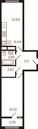 Купить 2к квартиру 46 м² в миниполис Рафинад
