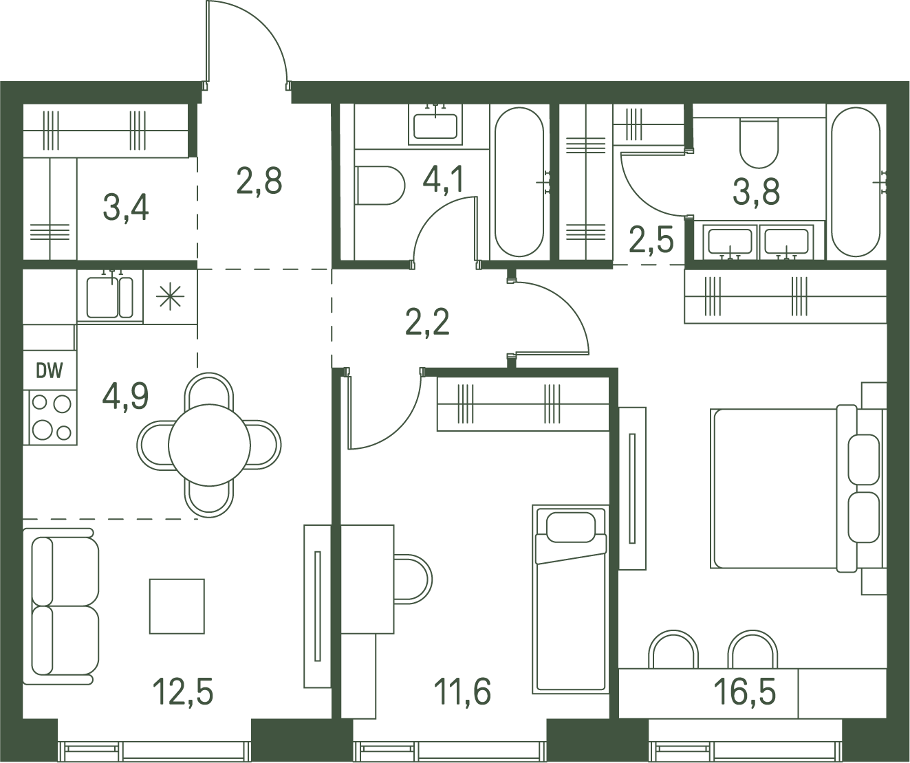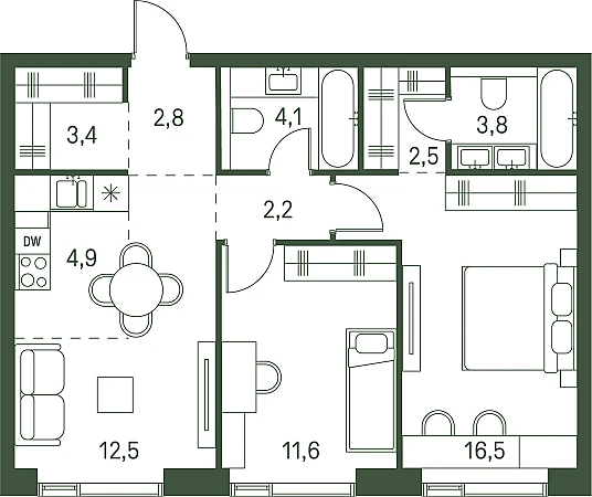 Купить 2к квартиру 64 м² в ЖК Moments (Моментс)