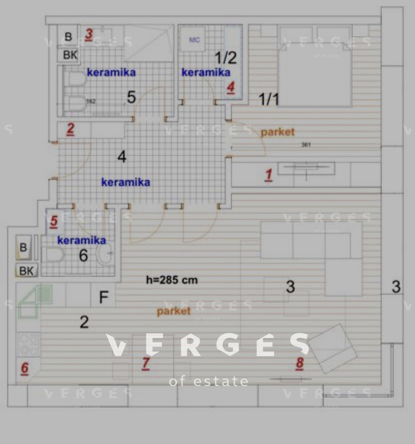 Продажа апартамента 71м2 с 1 спальней, кухней и гостиной, 2 санузла.