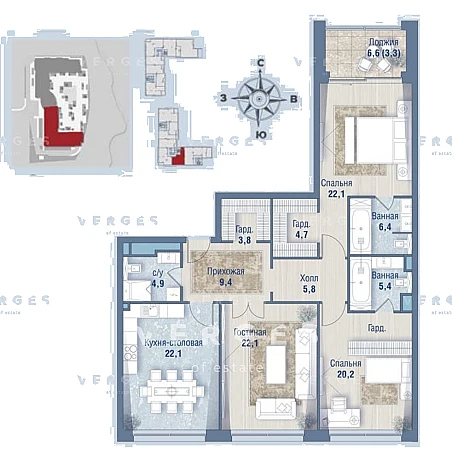 Продается просторная квартира площадью 133.40 м2 в жилом комплексе РЕКА. Квартира находится во 2 секции корпуса 1 введен в эксплуатацию в 4 кв. 2021. Этаж 7-й из 10. Высота потолка от 3,65 м. Виды на природный парк и реку.
