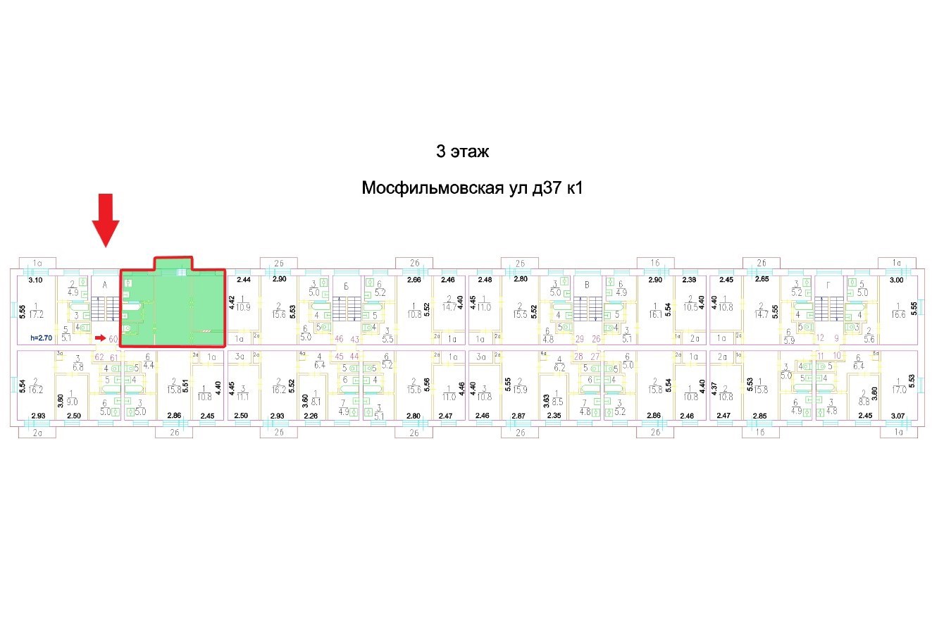 Квартира, 2-комн., 42,5 м², ЗАО (р-н Раменки, (м.Ломоносовский проспект) | ЗАО, р-н Раменки, Мосфильмовская ул., д. 37, корп. 1, Этаж № 3,кв. 60 | Метро: Ломоносовский проспект (пешком 9 мин., транспортом 9 мин., расстояние 0.55 км)