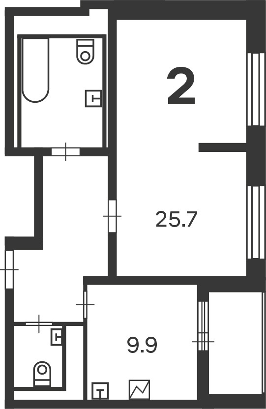 Площадь жилая: 25,7 м²