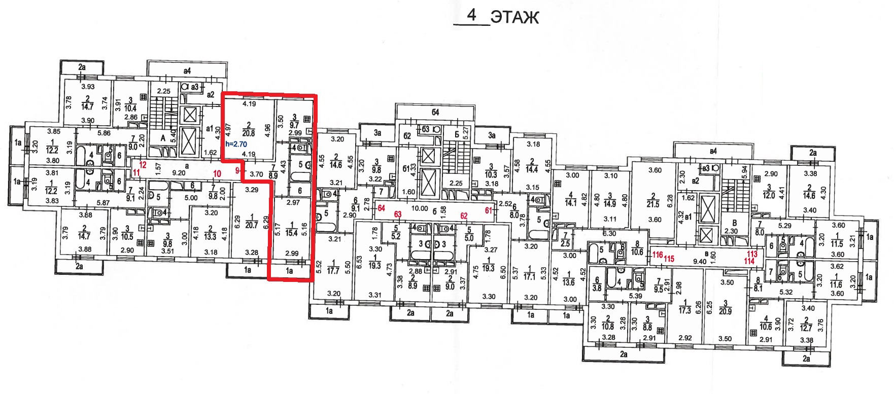 Высота потолков: 2,70 - 2,70 м