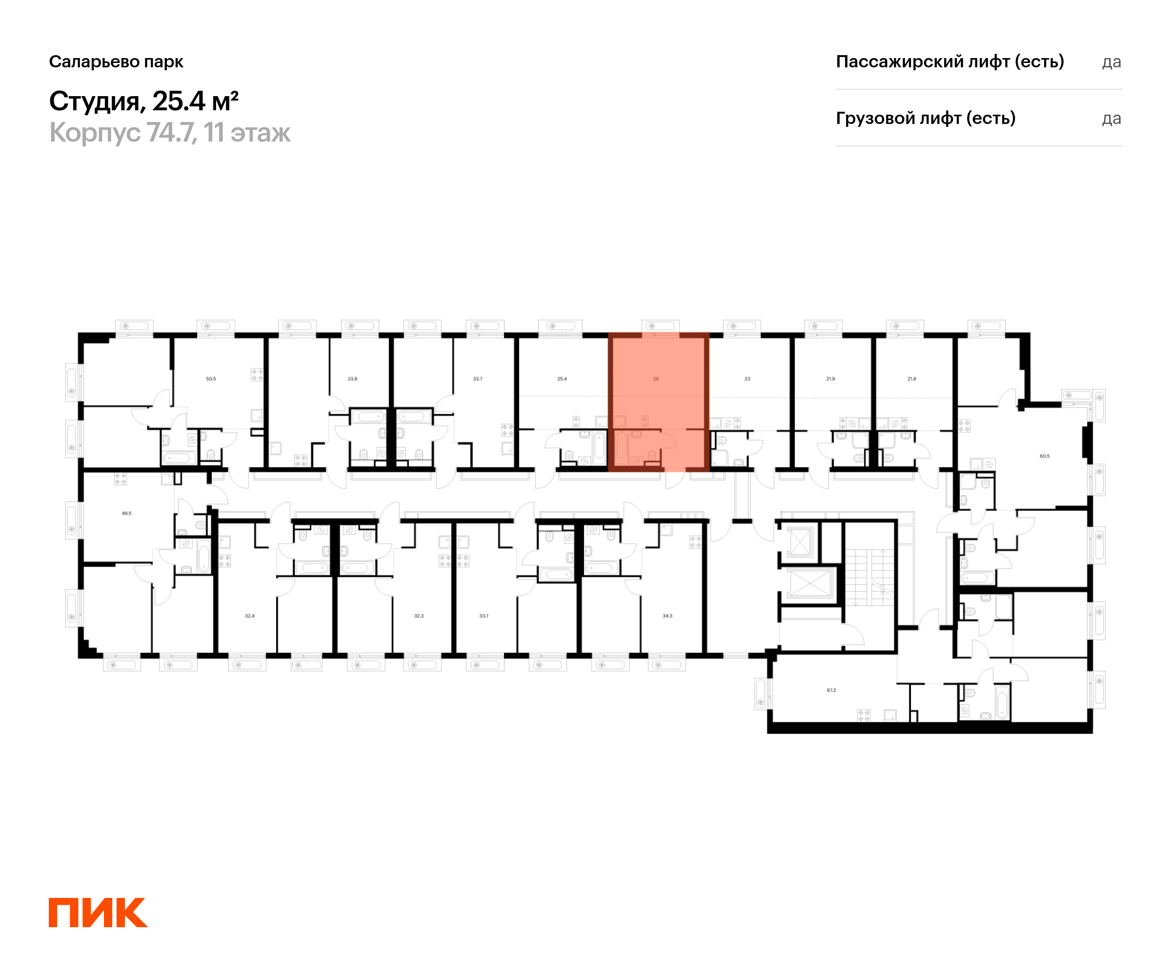Продаётся квартира-студия площадью 25.20 кв.м на 27 этаже 53 этажного дома (Корпус 1.4, секция 1) проекта ПИК Полар. Светлый просторный подъезд на уровне земли, функциональная планировка, большие окна, с отделкой.