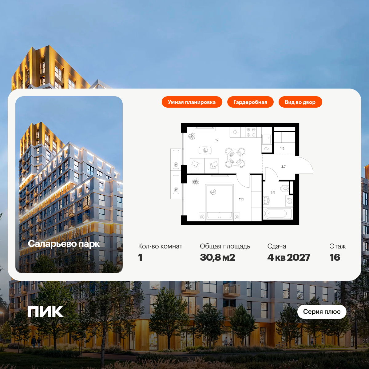 В проекте широкий выбор планировок: от компактных и продуманных студий до просторных трёхкомнатных квартир для большой семьи. Есть удобные форматы с кухней-гостиной, гардеробной и двумя санузлами. Для ценителей простора и обилия солнечного света мы предусмотрели угловые окна и балконы. А с верхних этажей откроется впечатляющий вид на Медведковский заказник, Останкинскую башню и Москва-Сити. Артикул - 874474