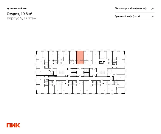 Продаётся квартира-студия площадью 19.90 кв.м на 17 этаже 25 этажного дома (Корпус 9, секция 1) проекта ПИК Кузьминский лес. Светлый просторный подъезд на уровне земли, функциональная планировка, большие окна, с отделкой.