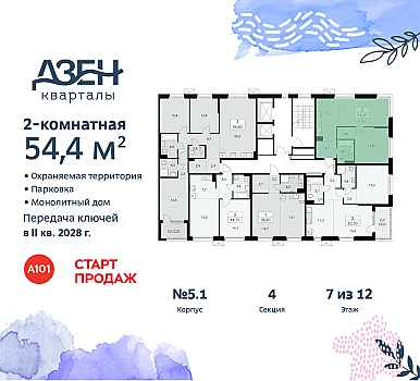 Продаётся 2-комн.квартира площадью 49.40 кв.м на 15 этаже 23 этажного дома (Корпус 4.6, секция 2) проекта ПИК Мичуринский парк. Светлый просторный подъезд на уровне земли, функциональная планировка, большие окна, с отделкой.