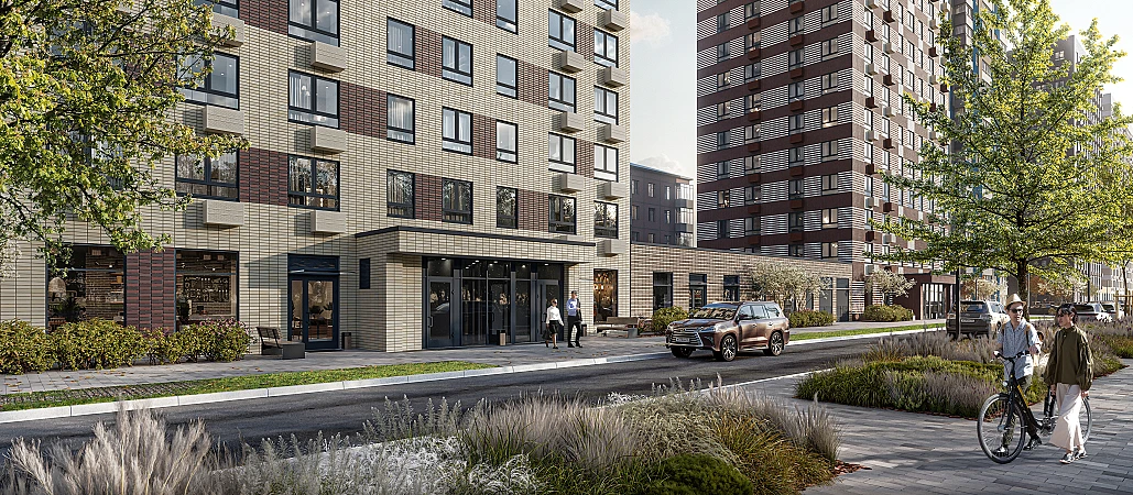 Проект состоит из трёх 17-этажных корпусов с просторными лобби с кондиционерами, а также дворами-парками с Wi-Fi. На первых этажах откроются магазины, кафе, салоны красоты и полезные сервисы для комфортной жизни.