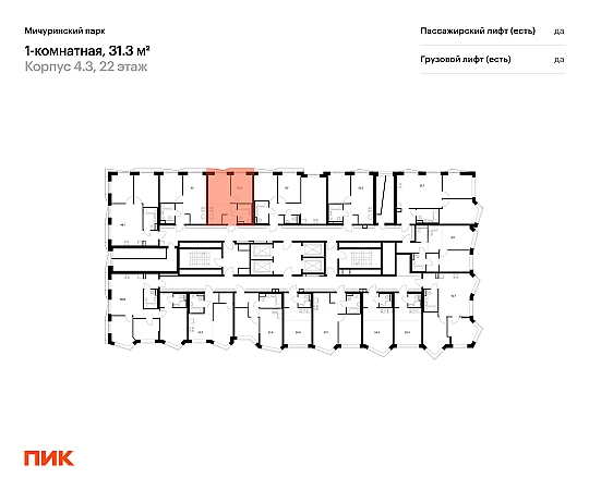 Продаётся 1-комн.квартира площадью 31.30 кв.м на 23 этаже 31 этажного дома (Корпус 4.3, секция 2) проекта ПИК Мичуринский парк. Светлый просторный подъезд на уровне земли, функциональная планировка, большие окна, с отделкой.