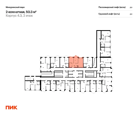 Продаётся 2-комн.квартира площадью 50.30 кв.м на 2 этаже 31 этажного дома (Корпус 4.3, секция 2) проекта ПИК Мичуринский парк. Светлый просторный подъезд на уровне земли, функциональная планировка, большие окна, с отделкой.